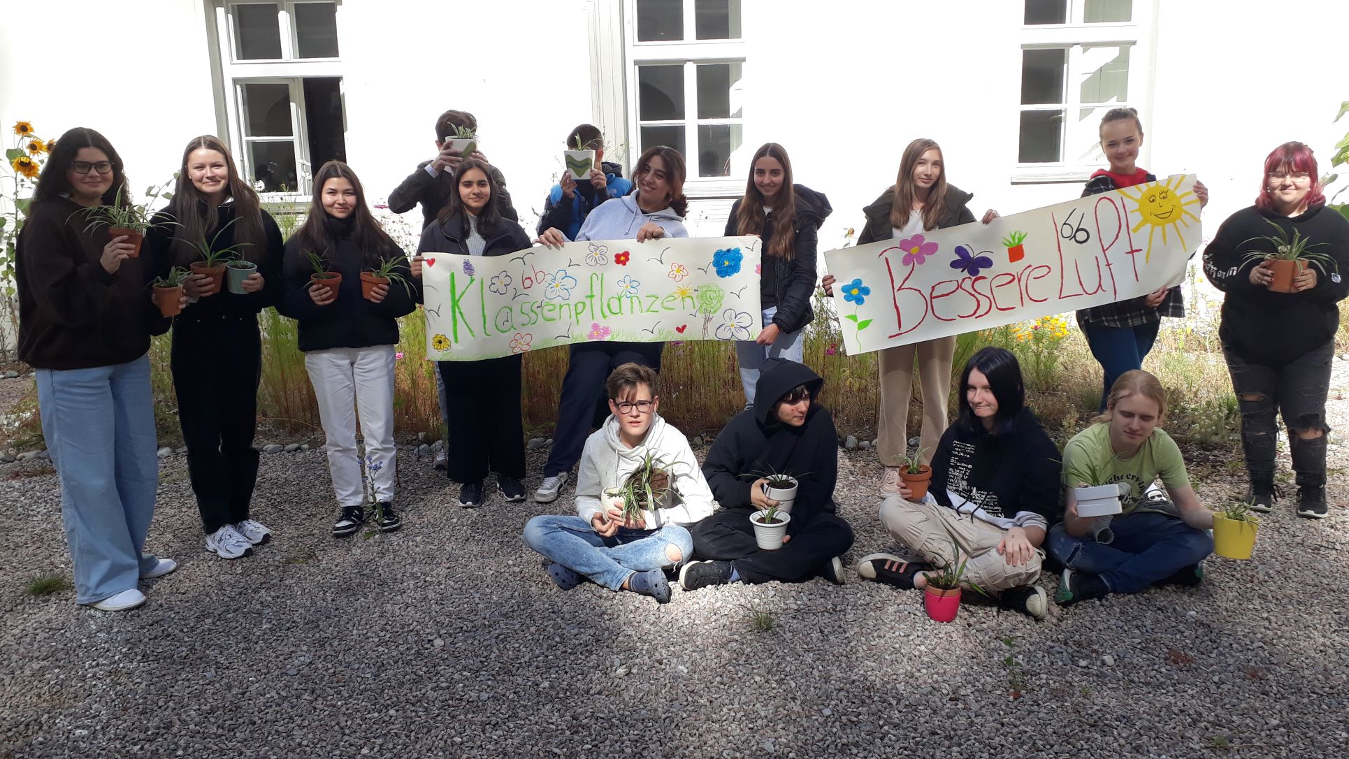 Dank dem Engagement der 6b und 8a konnte sich die Schulgemeinschaft zu Schulbeginn über wunderschöne Sonnenblumen und eine Blumenwiese im Schulhof erfreuen. Weiters hat die 6b kürzlich Pflanzen im Innenhof eingetopft, die demnächst an die Klassen verteilt werden – für ein besseres Klassenklima!