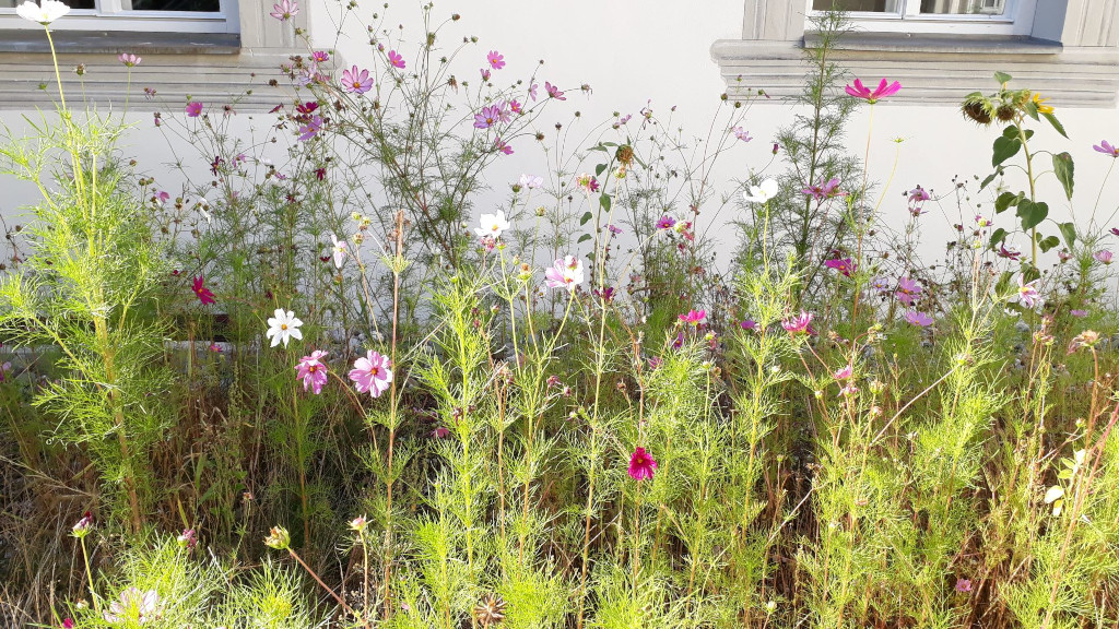 Dank dem Engagement der 6b und 8a konnte sich die Schulgemeinschaft zu Schulbeginn über wunderschöne Sonnenblumen und eine Blumenwiese im Schulhof erfreuen. Weiters hat die 6b kürzlich Pflanzen im Innenhof eingetopft, die demnächst an die Klassen verteilt werden – für ein besseres Klassenklima!